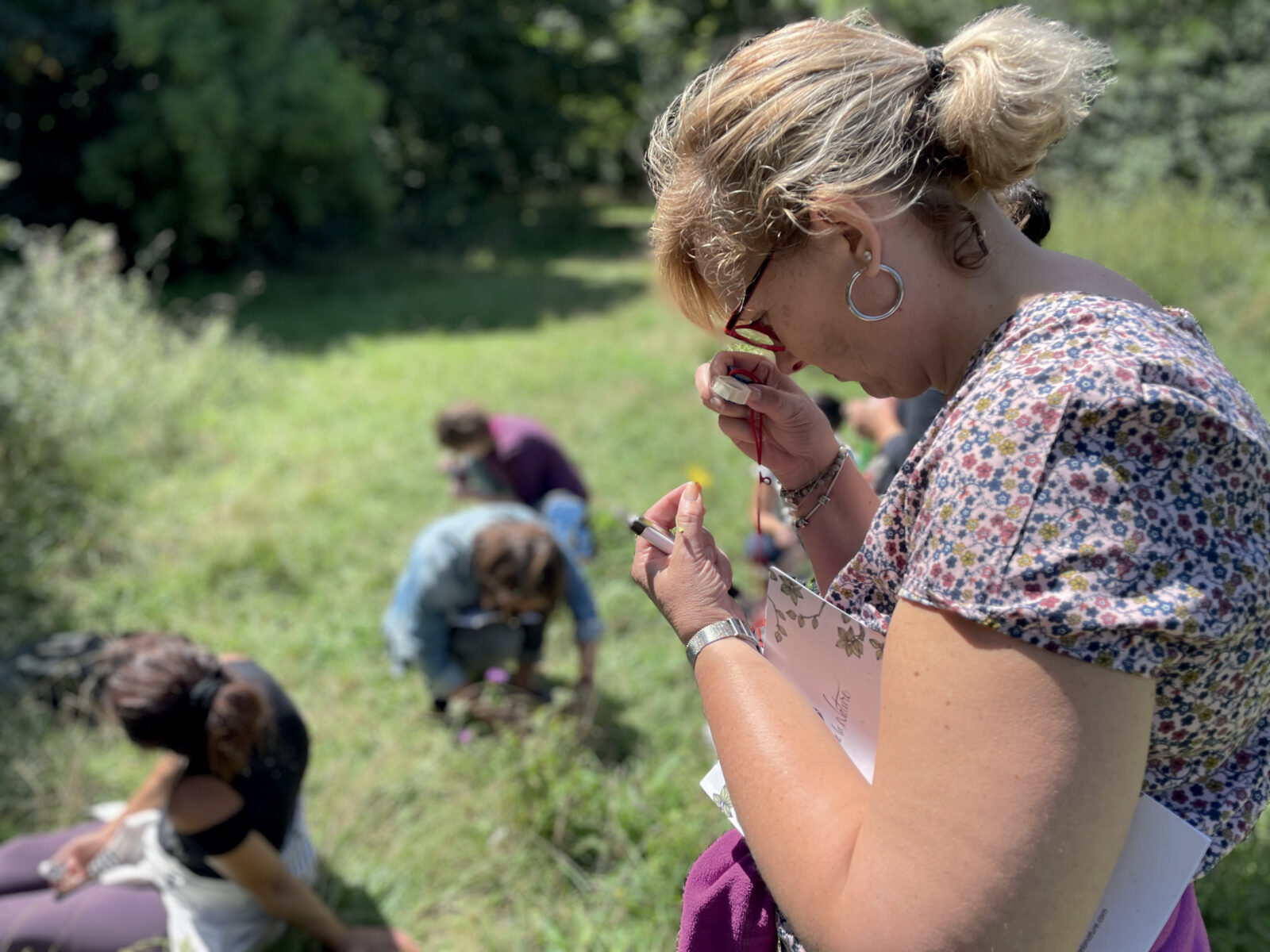 Un bon guide de détermination et une loupe sont indispensables pour identifier les végétaux. Choisissez un ouvrage où les plantes sont classées par familles, pas par la couleur de leurs fleurs ! Les applications de reconnaissance ne sont jamais fiables à 100 % et ne permettent pas vraiment de progresser, ne les utilisez que comme coups de pouce. Pour la récolte, munissez-vous d’un couteau ou d’une serpette. Des gants peuvent être bien utiles pour prélever certains végétaux épineux ou urticants. Si vous voulez déterrer des racines, une petite pelle de jardinage est nécessaire. Un panier et des sacs en tissu ou en papier gardent les plantes en bon état le temps de la balade. Pour les fleurs ou les fruits délicats, privilégiez des boîtes fermées.