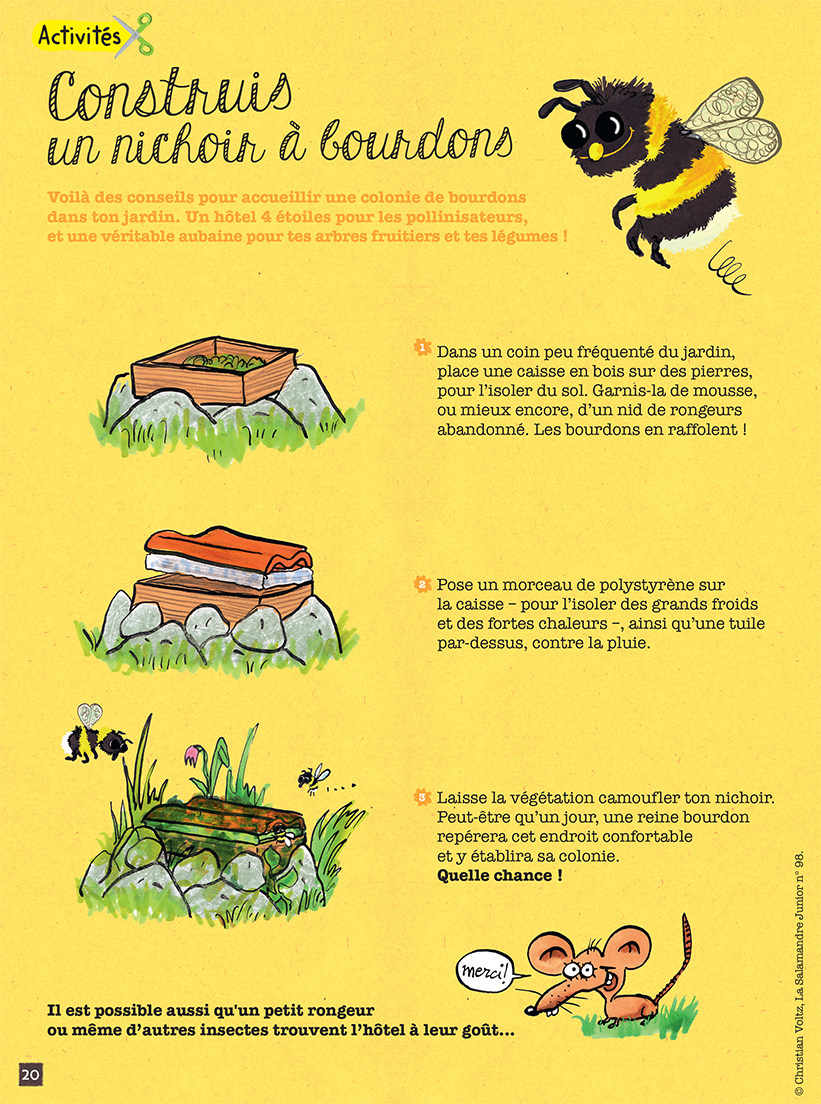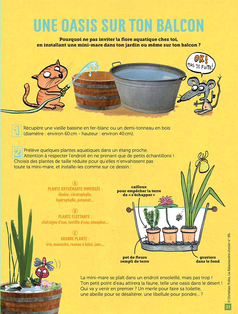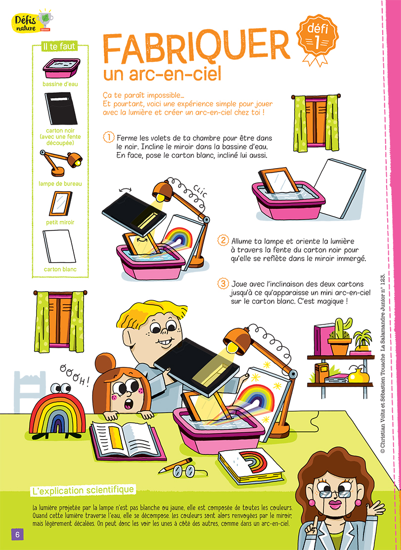 Plein d'idées de petites expériences nature simples à réaliser chez soi. Vous avez un balcon ? Vous pouvez installer cette mini mare ! Pour les enfants qui aiment les sciences, la bonne idée : fabriquer un arc-en-ciel dans sa chambre. Et pour ceux qui ont un jardin, vous pouvez construire un nichoir à bourdons. C'est facile comme tout !