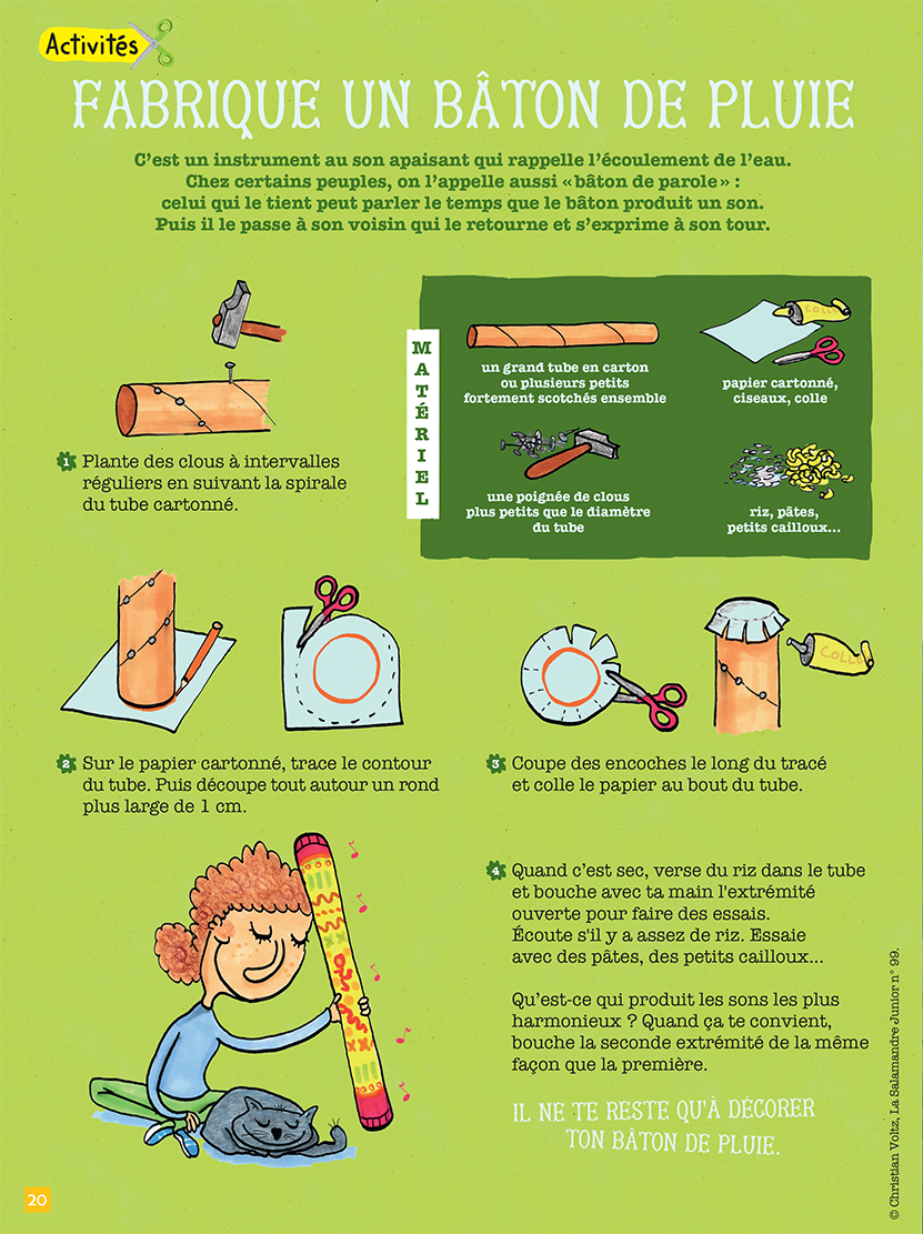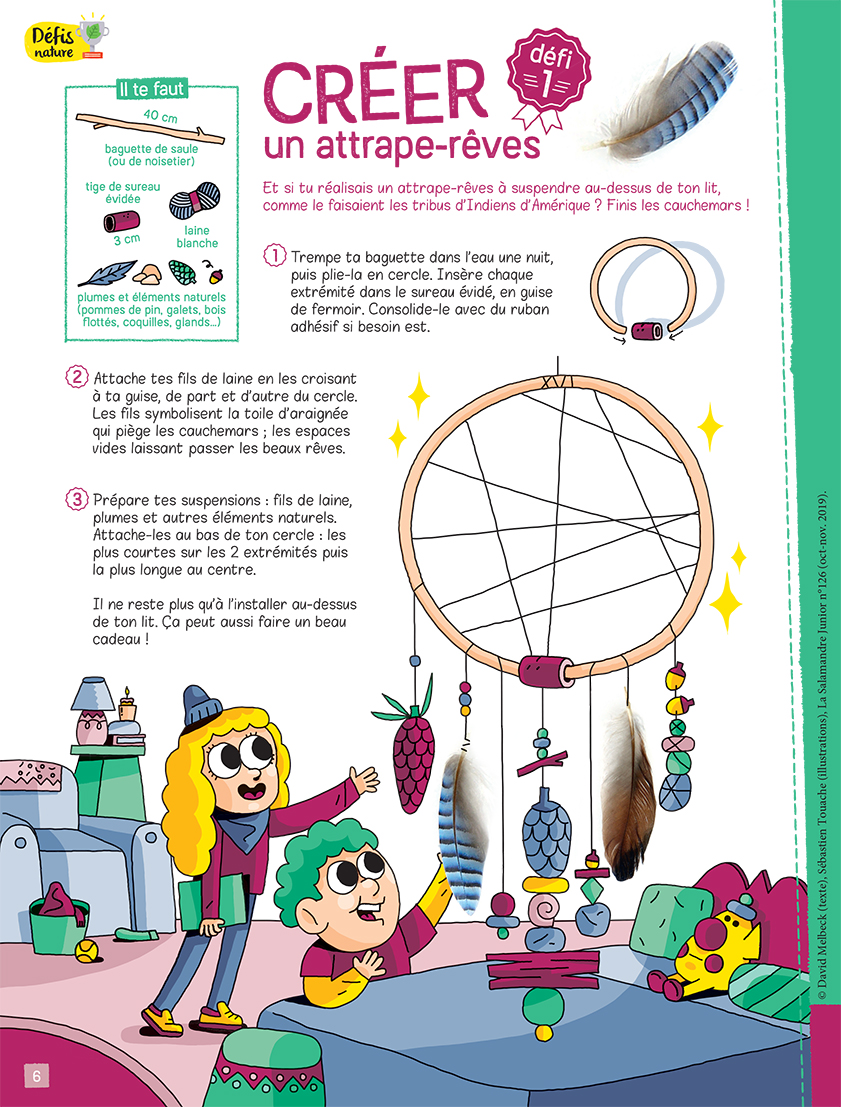 Voici ici plein d'idées de petits bricos simples à réaliser ensemble. Vous voulez profiter du jardin et commencer avec vos enfants un magnifique herbier. Voici ce qu'il vous faut : un brico pour fabriquer un presse-fleur ! Pour les grands enfants qui veulent agrémenter la déco de leur chambre : proposez-leur de tester cet attrape-rêve nature. Et pour les plus petits,la bonne idée, c'est un bâton de pluie !