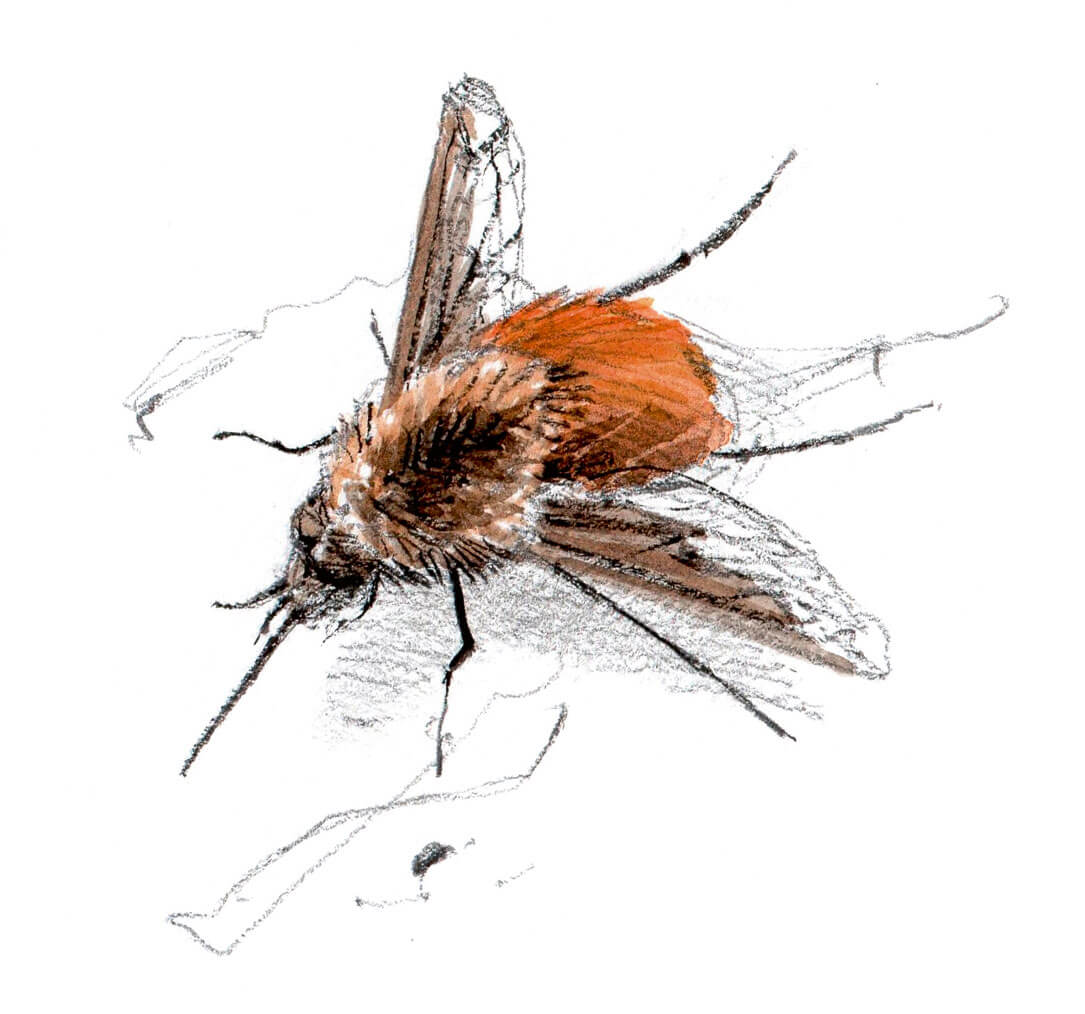 Longue trompe, fourrure brune, pattes pendantes. Non, ce butineur qui sirote les primevères en vol stationnaire n'est pas un bourdon mais un grand bombyle, une authentique mouche. L'insecte printanier navigue de corolle en corolle comme un colibri. Un adorable butineur nectarivore ? Pas seulement ! Le bombyle a un secret que les entomologistes ont mis du temps à découvrir. La femelle dépose chacun de ses œufs à l'entrée d'une galerie d'abeille solitaire. A l'éclosion, la larve équipée de solides mandibules s'enfonce dans la demeure de son hôte dont elle dévore la descendance avant de se nymphoser. Ainsi, au printemps suivant, un bombyle fringant émergera du nid d'une abeille.