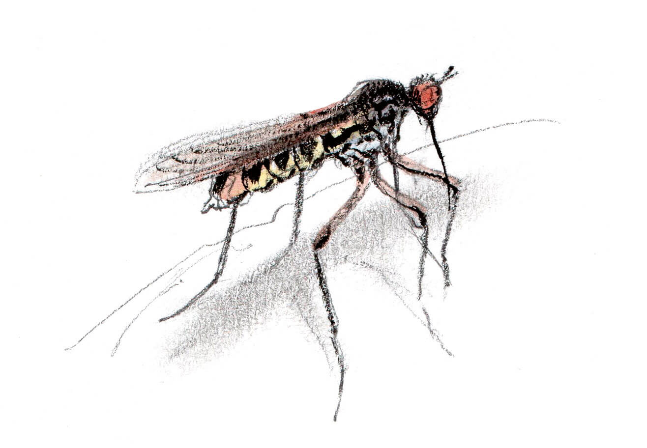 Ouf ! Ce n'est pas un moustique monstrueux qui vient de rentrer dans la cuisine mais une inoffensive grande tipule, la plus grande mouche d'Europe. Pattes pendantes, vol hésitant, le cousin comme on l'appelle aussi a l'air plutôt maladroit. Son asticot de 5 cm vit sous l'eau. Après la métamorphose, l'insecte adulte a pour principal souci de trouver un partenaire du sexe opposé. L'accouplement se fait cul à cul dans un méli-mélo de pattes interminables.