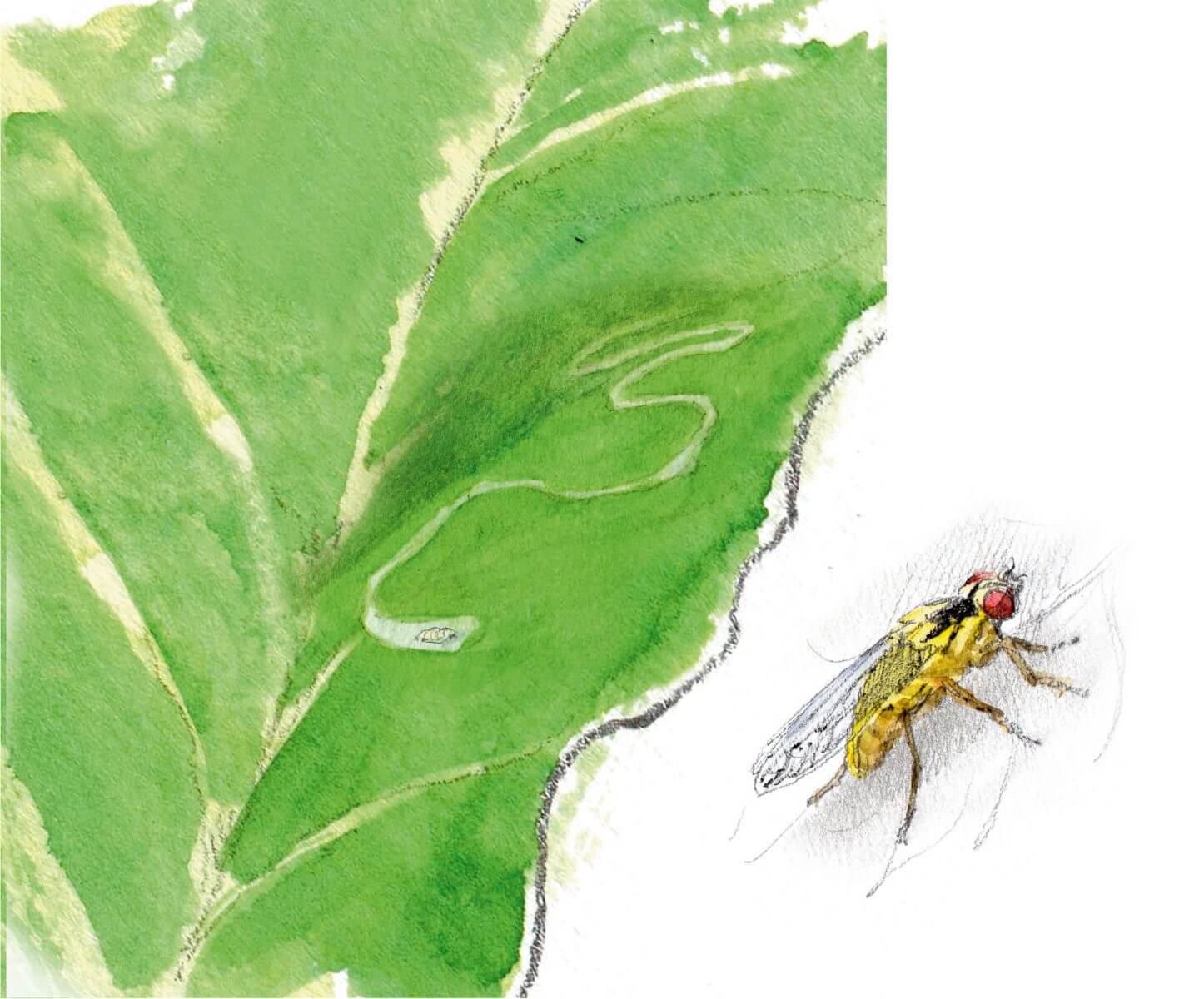 Des mouches minuscules de la famille des agromyzidés pondent leurs œufs dans l'épaisseur des feuilles d'une espèce de plante très précise. La larve mineuse se développe en rongeant une galerie de plus en plus large dans ce monde en deux dimensions. L'asticot est comme un coq en pâte entouré de sa nourriture qui le protège des prédateurs. L'identité de la plante hôte, le tracé de la galerie, ses arabesques et l'allure du trou de sortie indiquent à laquelle des 850 mouches mineuses on a affaire. En revanche, en détaillant à la loupe l'asticot ou l'adulte, c'est quasiment impossible.