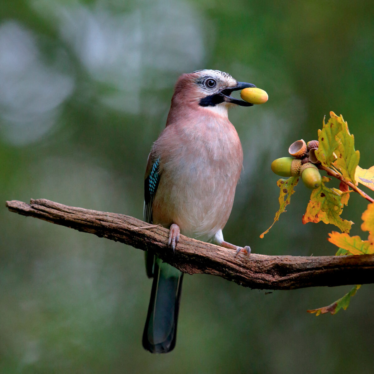 Le bavard des glands, c’est la traduction littérale du nom latin du geai des chênes, Garrulus glandarius. Ce corvidé peut en consommer entre 15 et 20 par jour, soit un quart de son propre poids. Mais il pense également à l’avenir et en cache parfois plus de 5 000 en prévision de l’hiver ! Une bonne partie de ces fruits sera retrouvée et engloutie, mais les autres seront abrités du gel et de la sécheresse, dissimulés aux yeux des gourmands et idéalement situés pour germer au printemps prochain. Nourriture contre dissémination : un échange de bons procédés entre l’arbre et l’oiseau.