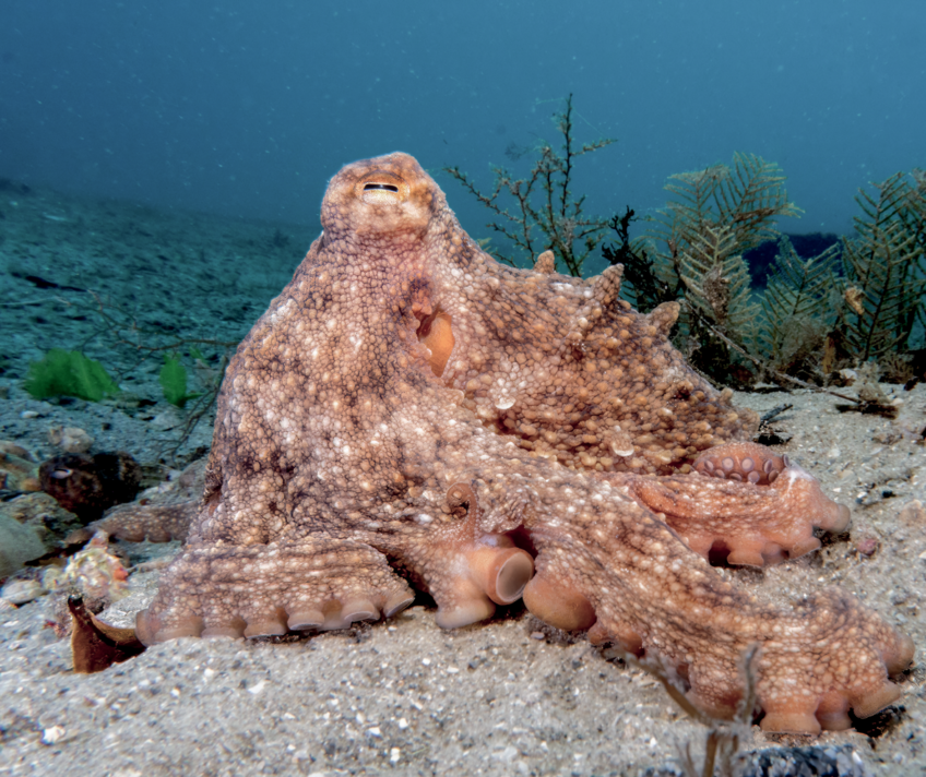 Poulpe commun : Octopode typique présent dans les eaux tempérées et tropicales du monde entier.