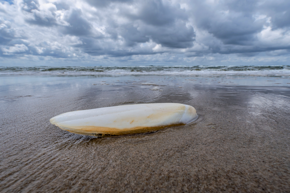 Seiche commune : Décapodiforme connu pour son sépion, ou os de seiche, coquille interne poreuse permettant le contrôle de la flottabilité par l’intermédiaire des gaz qu’elle renferme.