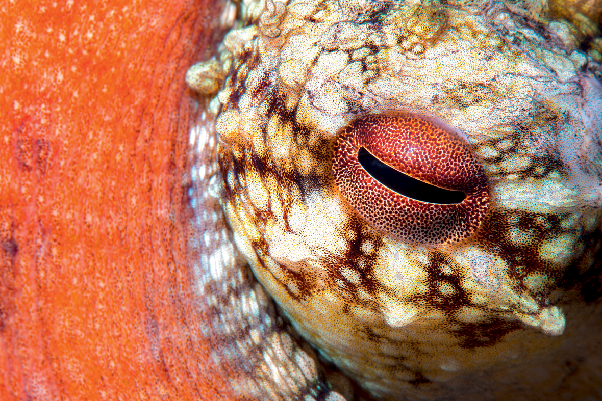 Ne possédant qu’un seul type de pigment photosensible, la pieuvre voit en noir et blanc. Mais cela n’affecte en rien l’importance de la vue chez cet animal qui lui consacre les deux tiers de son cerveau, contre 20 % pour nous.
