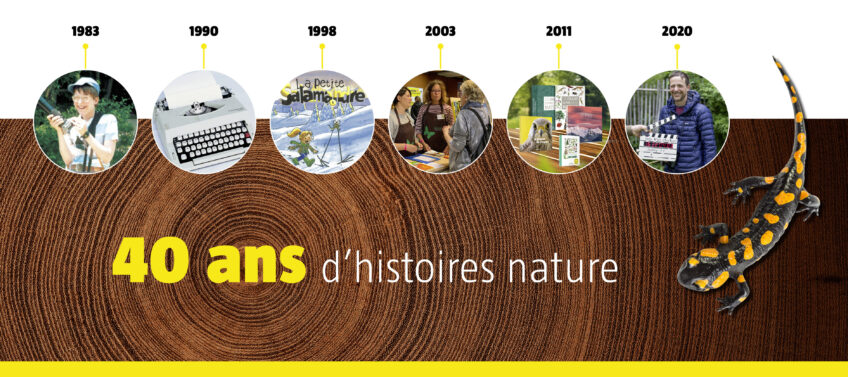 Créée par un jeune naturaliste de 11 ans en 1983, la Salamandre a tissé en 40 ans de nombreux liens entre humains et non-humains, entre fous de nature et profanes, entre science et art ou encore entre Suisse, France et Belgique. Une histoire qu'on vous résume en quelques chiffres et mots-clés.