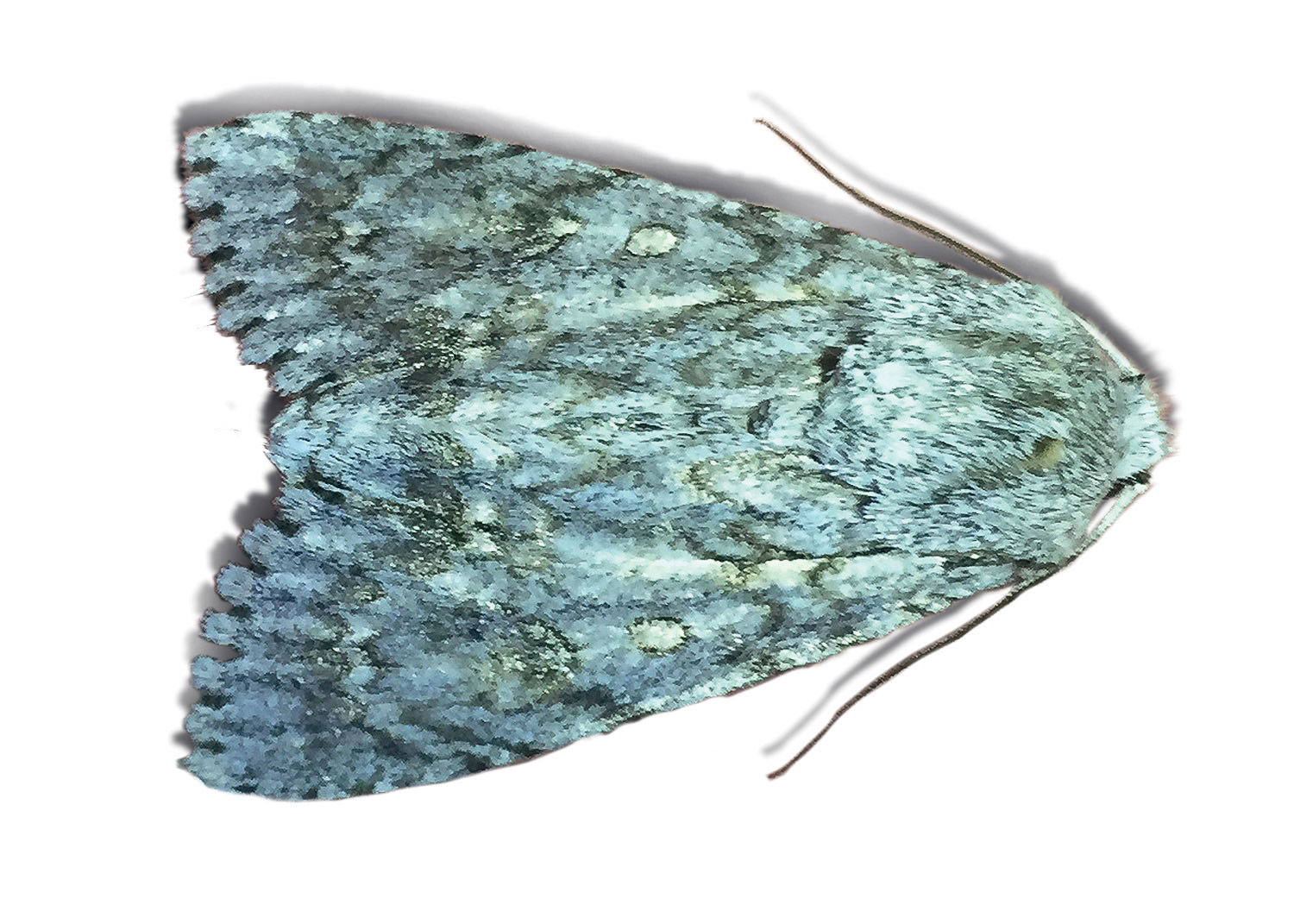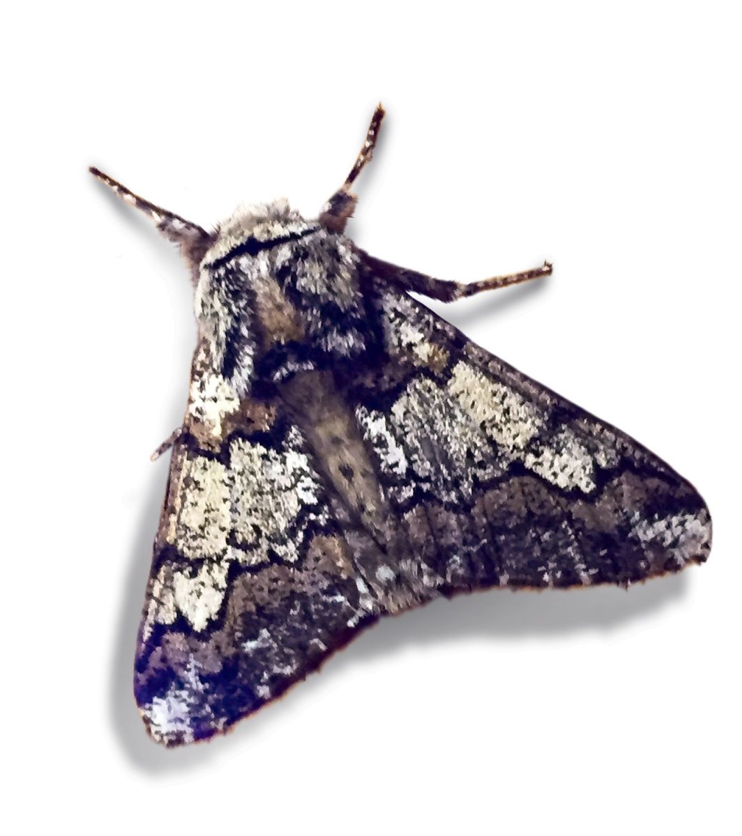 Je veux en savoir plus sur cette Cerastis leucographa. Le bon réflexe, ouvrir un livre : « Papillon plutôt septentrional et oriental, butine le soir les chatons de saule, vit dans les bois clairs de feuillus, la chenille se nourrit de plantains et pissenlits. » Et voilà le lien entre la présence de la bête et son environnement. Les arbres de la rivière en contrebas et les plantes communes de mon jardin que je fais bien de ne pas faucher trop souvent ni brutalement… il n’y a pas de hasard.