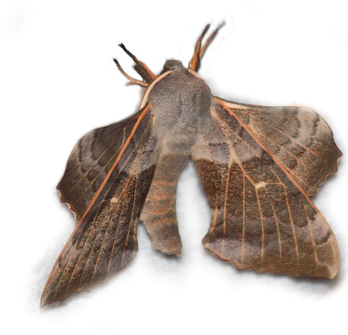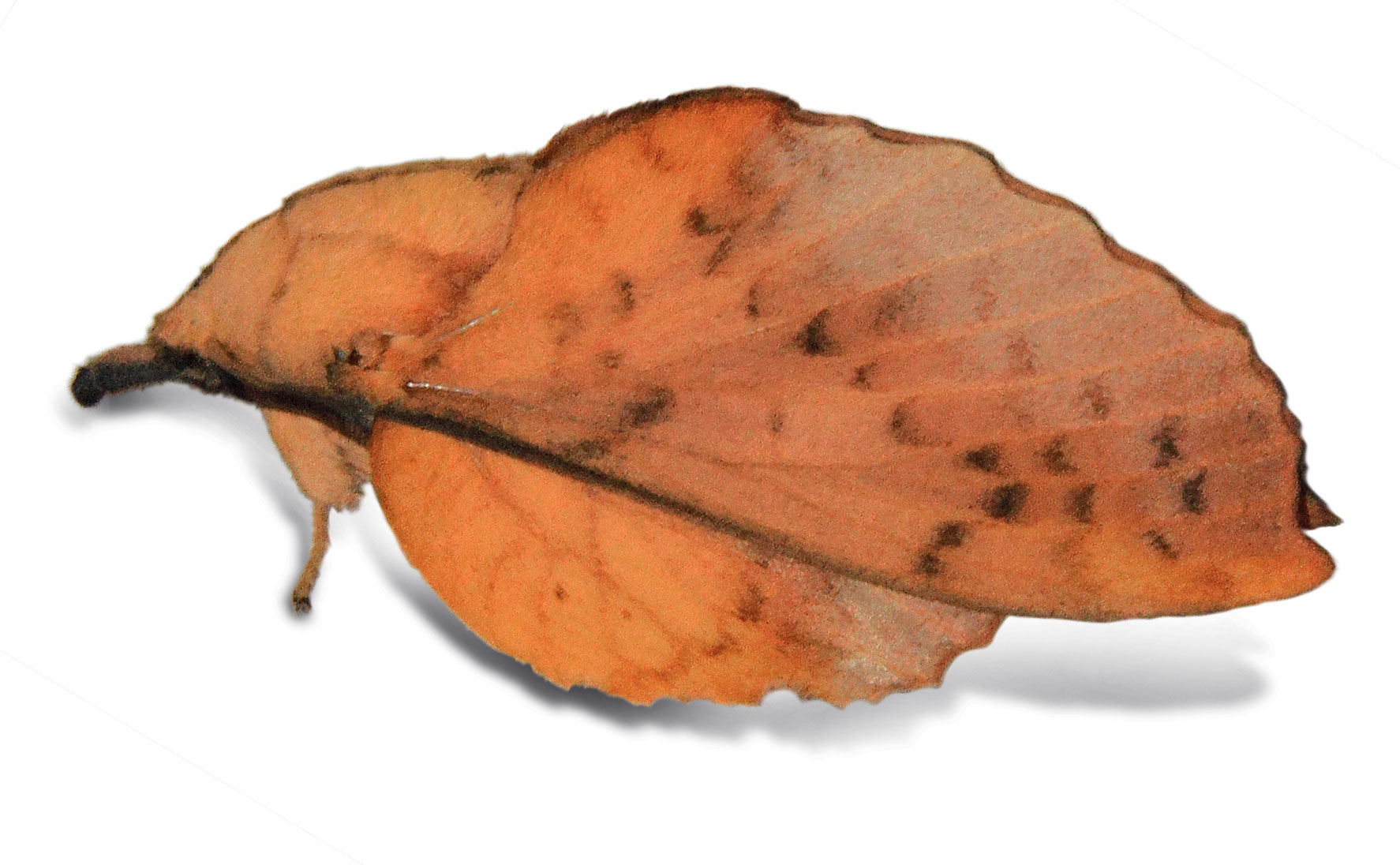 Puis, dans un repli du tissu, j’aperçois une silhouette tout à fait spectaculaire en contre-jour. Je crois l’identifier. J’écarte délicatement la toile, bingo ! La feuille morte du tremble ! Ses ailes antérieures jointes viennent croiser perpendiculairement les postérieures tenues à plat. L’ensemble est découpé et coloré de sorte à rendre invisible le papillon dans un feuillage forestier. Sur mon piège blanc, l’astuce ne fonctionne évidemment pas. Avant de m’intéresser à ces bêtes, je pensais que de telles créatures n’existaient qu’en forêt équatoriale.