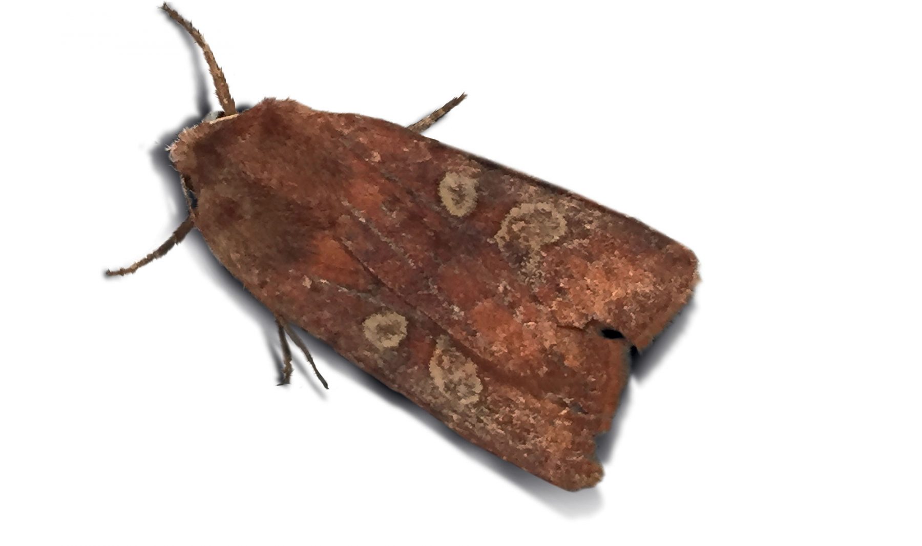 Retour autour du halo lumineux de tous les espoirs. Les enfants sont couchés cette fois et plus aucun bruit ne trouble le son de la rivière en contrebas. L’inventaire se poursuit : noctuelle des potagers, crénelée, timide, orrhodie tigrée, triple tache… Ah, une inconnue ! Je dis une car j’y vois une noctuelle, famille très riche en espèces. Les deux taches principales de l’aile antérieure – qualifiées d’orbiculaire et de réniforme – sont blanchâtres à centre sale, le tout sur un fond brun-rouge. L’extrémité de l’aile est assez anguleuse. D’autres critères s’ajoutent et la confirmation tombe : noctuelle leucographe. 488e espèce de papillon de nuit identifiée au jardin depuis que j’ai commencé ! Un chiffre impensable pour moi il y a trois ans.
