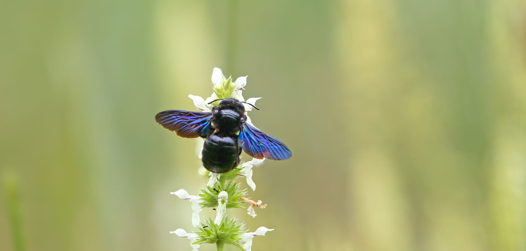 Dans la nature en mars, prêtez attention au vol lourd et bourdonnant du xylocope violet. À la force de ses ailes fumées aux reflets bleutés, cette abeille charpentière de près de 3 cm peut effectuer de grandes distances en quête de pollen et de nectar. Bientôt, la femelle creusera des galeries de ponte dans le bois mort.