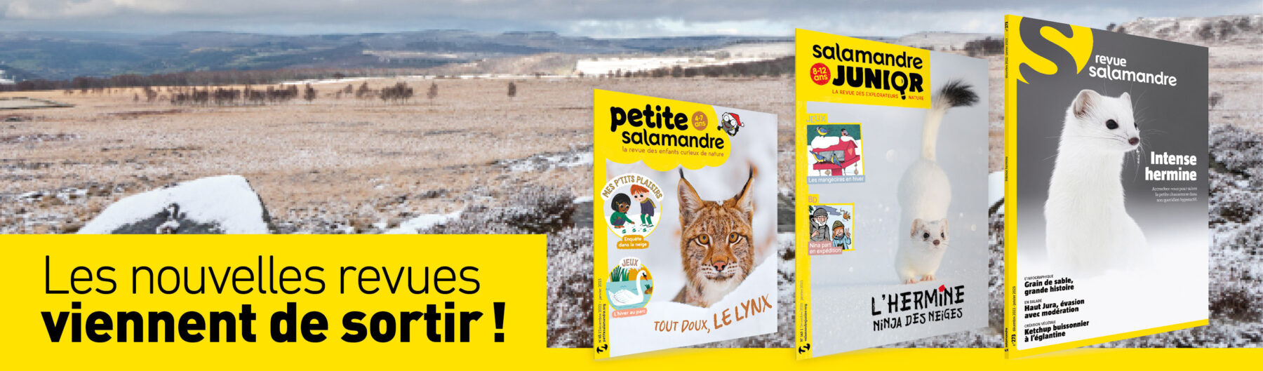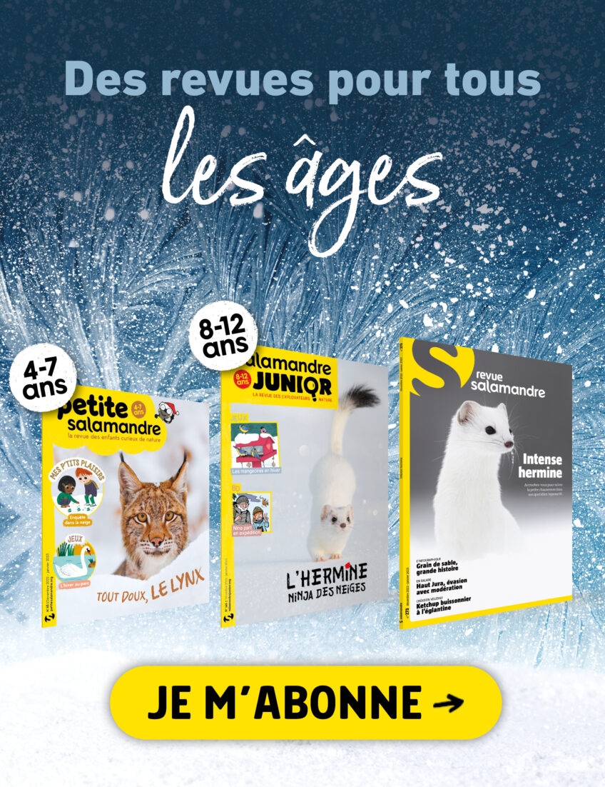 Vivez l'hiver avec La Salamandre et ses 3 revues nature pour tous les âges de décembre 2022. Au programme : l'hermine pleine de vie et le lynx très discret. Des dossiers passionnants accompagnés de mille sujets incroyables.