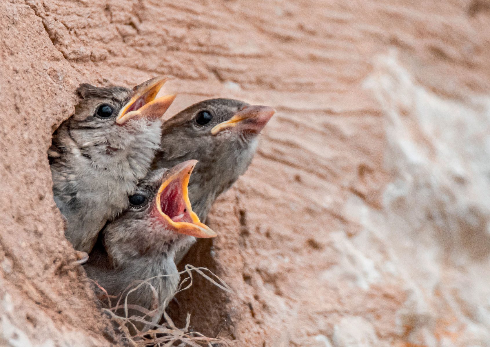 Le nid du moineau est un assemblage de paille, brindilles et plumes. Du simple tas désordonné garnissant une cavité, le nid devient œuvre d’architecte avec chapeau de paille lorsqu’il est bâti en extérieur. Des pylônes électriques aux nids de cigogne en passant par les trous de murs, les toits et les réverbères, la liste des logis potentiels pour le piaf est infinie.