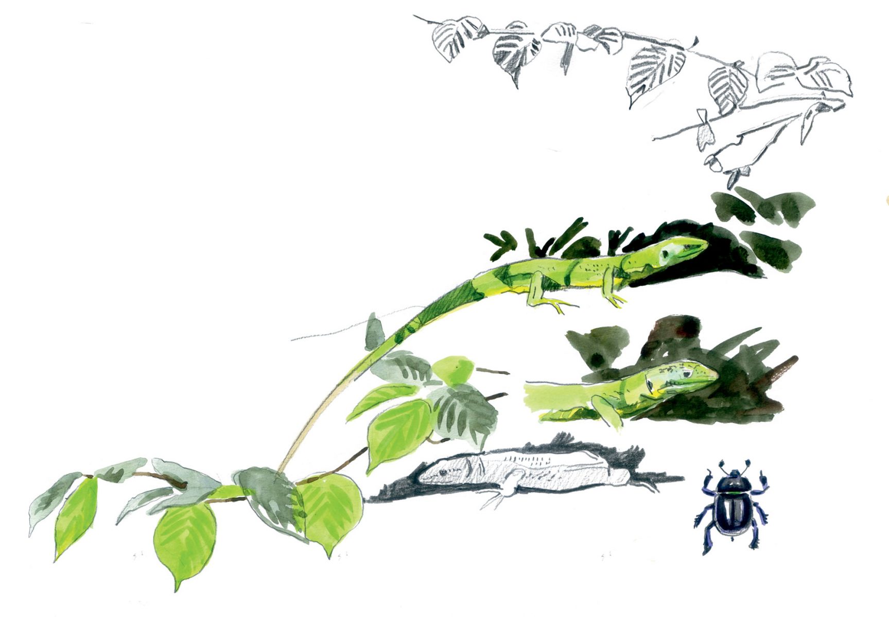 Passé la saison des amours vernales du noisetier, revenez en avril guetter le bourgeonnement de ses feuilles dentées et velues, réjouissez-vous en juillet du jaillissement des noisettes fraîches, puis savourez en septembre le mûrissement de ces offrandes. Et enfin, pourquoi ne pas perpétuer la connivence ancestrale qui nous lie au vénérable noisetier en taillant un bâton de marche dans une de ses branches vigoureuses ? Tel un trait d’union entre votre main et la terre.