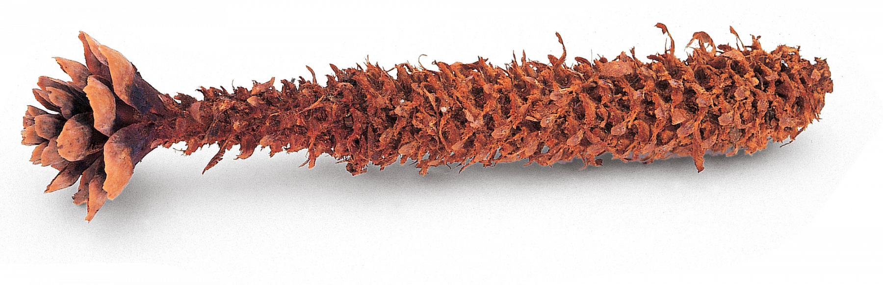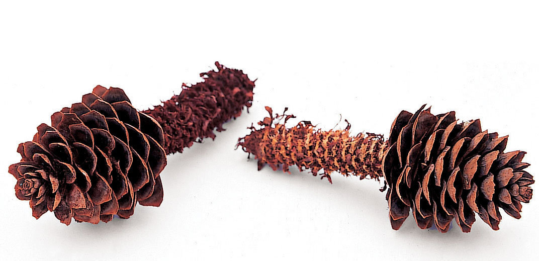 Installé à proximité du tronc, à l’abri de la bise et des regards, l’écureuil fait tourner le cône entre ses doigts et ronge une à une les écailles solidement imbriquées. Sous chacune d’elles, deux délicieuses amandes qu’il engloutit prestement. Après en avoir fait le tour, l’écureuil lâche son butin qui, réduit à un axe effiloché terminé par un toupet, tombe sur un sol déjà tapissé d’écailles.