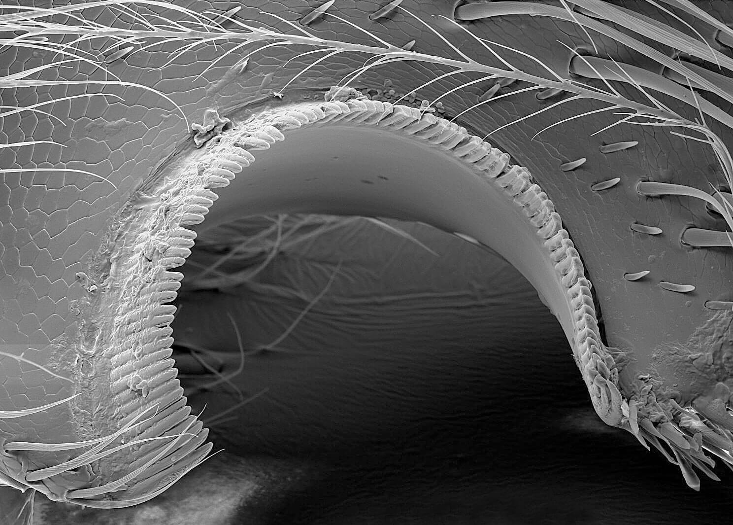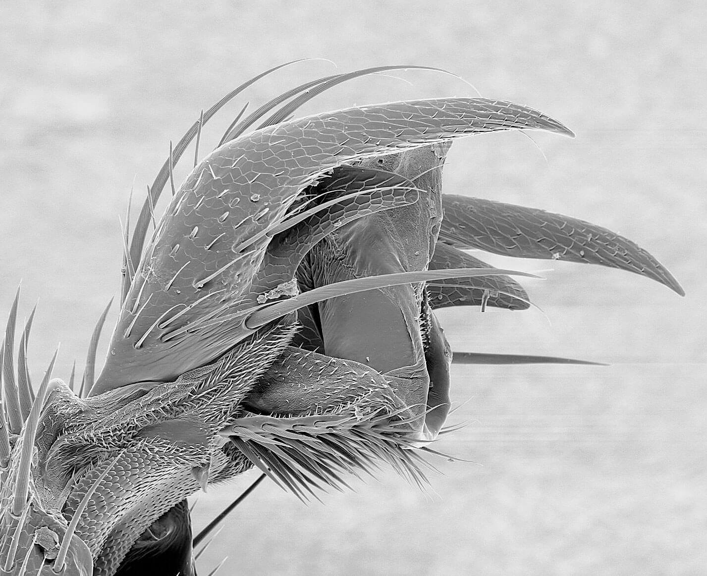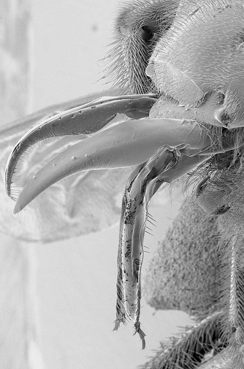 PINCER - La bouche de l’ouvrière est bien outillée. Ses mandibules supérieures sont de redoutables pinces avec lesquelles elle peut cisailler les anthères des fleurs, découper et malaxer la cire. Elle s’en sert aussi pour évacuer de la ruche cadavres et détritus.