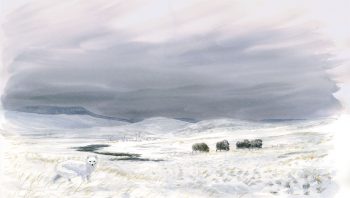Même endroit, vingt-cinq millénaires plus tôt, un vent catabatique chargé d’une poudreuse cinglante déferle du glacier jurassien. Il accélère sa course dans la vallée avant de s’abattre avec rage sur le piémont et la plaine. La vie s’incline devant l’assaut du blizzard. Seuls quelques bœufs musqués, solides comme des rocs, paraissent indifférents au climat. Ils n’ont plus grand-chose à se mettre sous la dent après le passage d’un bataillon de mammouths ce matin. Saules polaires, laîches et graminées ne dépassent plus des congères. Un renard couleur flocon trotte en quête d’un rongeur imprudent. Sa queue touffue le devance parfois, emportée par les bourrasques. A son passage, quelques bruants des neiges et sizerins blanchâtres fuient en rampant.