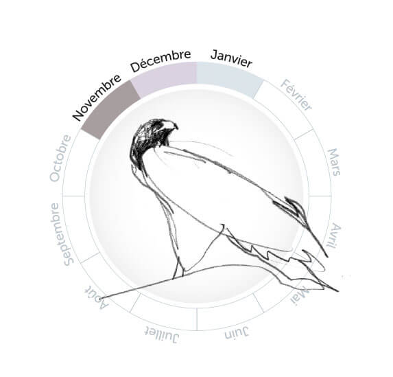 L'hiver attaque: premiers gels et premières neiges. Chez l'aigle, la saison est à la séduction et aux disputes territoriales.