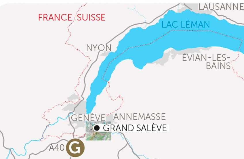 Dans le téléphérique qui mène au Grand Salève, le regard survole l'immense carrière qui sape le flanc nord-ouest, mais aussi l’autoroute qui l’enserre comme une douve.