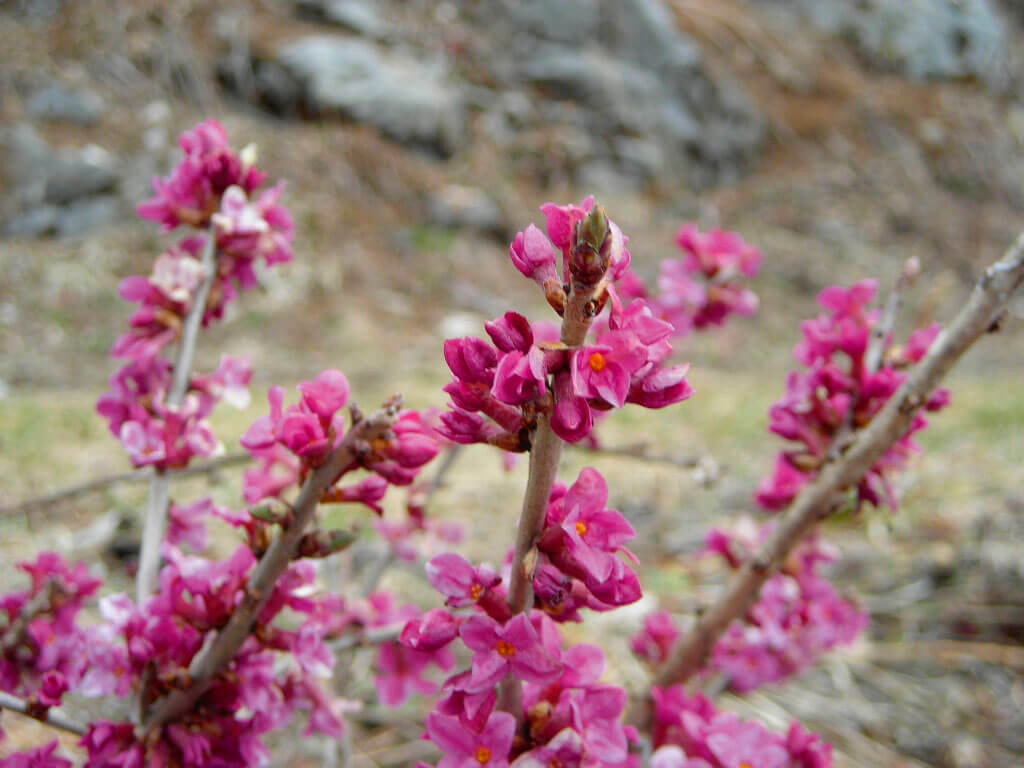 A 1097 m, au terminus, la vue embrasse la plaine et le Jura. Décor immense, vue de châtelain. De là, descente vers le vallon de Monnetier. En cette fin d’hiver, les bois sont encore dormants. Ils s’ornent joliment çà et là des fleurs roses précoces du bois-gentil. Qui porte bien mal son nom, car ses baies sont diablement toxiques. Elles servaient jadis à empoisonner les gêneurs, les loups en particulier.