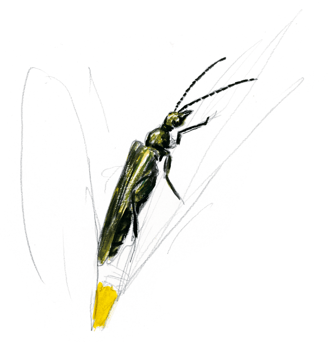 Longicorne élégant, la lepture tachetée affiche une prédilection pour les fleurs de couleur claire qu'elle butine avidement avant de s'envoler vers d'autres agapes.