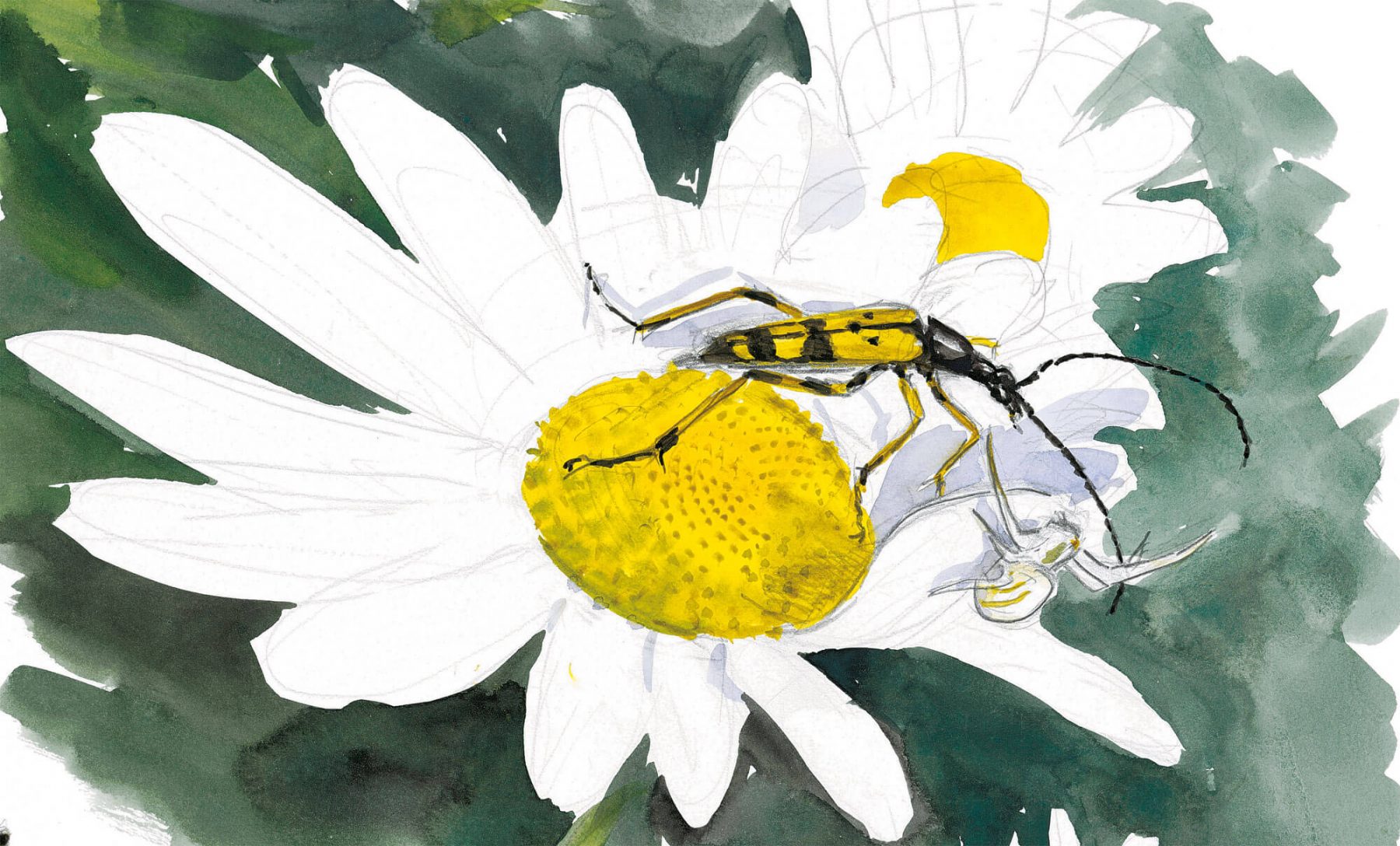 Au fond du jardin, dans les friches et au bord des chemins, elle s'épanouit en indisciplinés bouquets bicolores. Plutôt que la cueillir, observons la marguerite.
