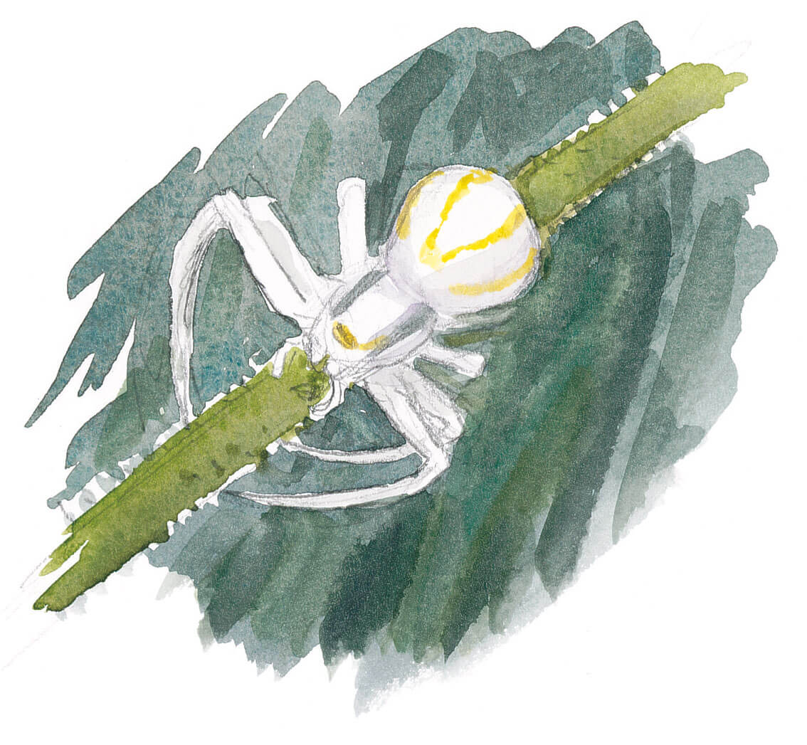 Pas besoin de toile : l'araignée thomise chasse à l'affût. Sa robe claire peut adopter des coloris allant du jaune au blanc rosé. Véritable caméléon, elle est capable de modifier sa couleur en changeant d'environnement. Toutefois, cette performance semble avoir peu d'influence sur le succès de ses chasses. L'araignée se camouflerait plutôt pour éviter les prédateurs et les parasites. Astuce