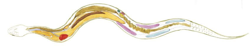 Et dire qu’elle possède les mêmes organes vitaux que nous ! A ceci près que tout doit trouver place dans un tube long et étroit. Cette forte contrainte exige quelques adaptations. Pour les poumons par exemple. Le droit s’étire sur près de la moitié de la longueur de la couleuvre, tandis que le gauche est réduit à la taille d’une noisette. Foie, reins et organes génitaux possèdent aussi une forme allongée. Bienvenue dans la filiforme dimension.