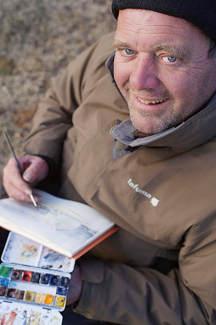 « J'habite dans le Hainaut, au sud-ouest de la Belgique, dans une vallée riche en zones humides qui constitue un couloir migratoire important pour les oiseaux. Agronome de formation, je m'intéresse à la nature sauvage depuis l'âge de 6 ans. Ce sont des cris étranges répétés nuit après nuit près de chez moi qui ont déclenché ma passion. Je ne savais pas qui en était l'auteur. A force de chercher, je me suis finalement retrouvé face à face avec une chouette chevêche! Cette rencontre inoubliable a été la première d'une très longue série. Cela fait une vingtaine d'années que je pratique l'aquarelle comme autodidacte. D'ailleurs, je me considère plus comme aquarelliste que comme dessinateur ! Au début, pour apprendre, j'ai beaucoup travaillé d'après photo. Mais, depuis quelques années, je peins ce que je vois de mes propres yeux.