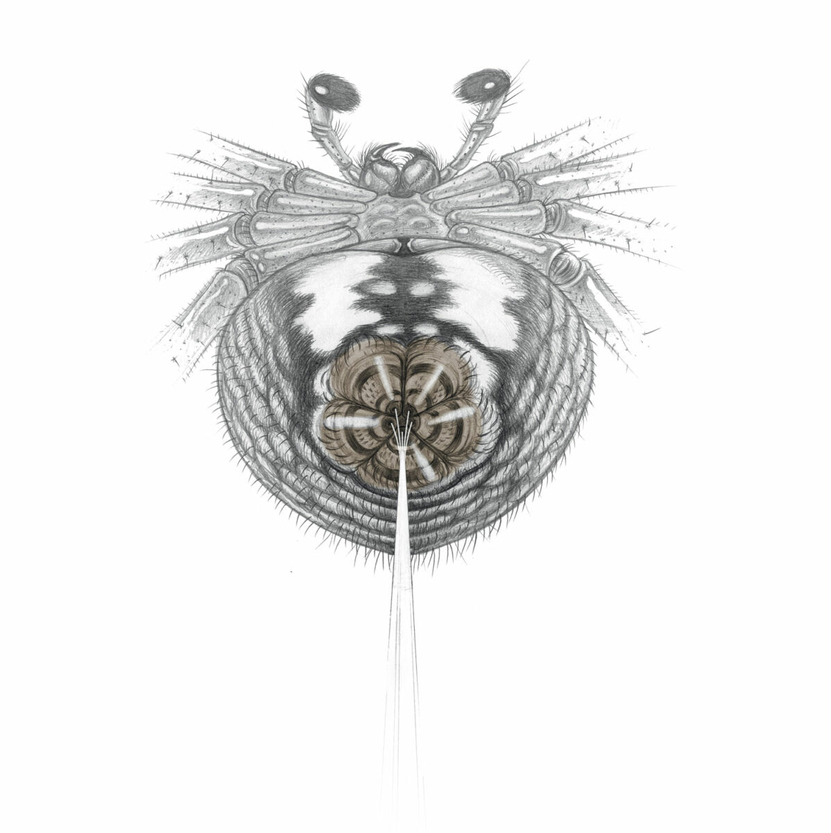 Fin, stable et rigide, le filin permet aux aventurières de jouer les funambules ou d’être emportées par le vent comme s’y prépare cette jeune araignée-crabe.
