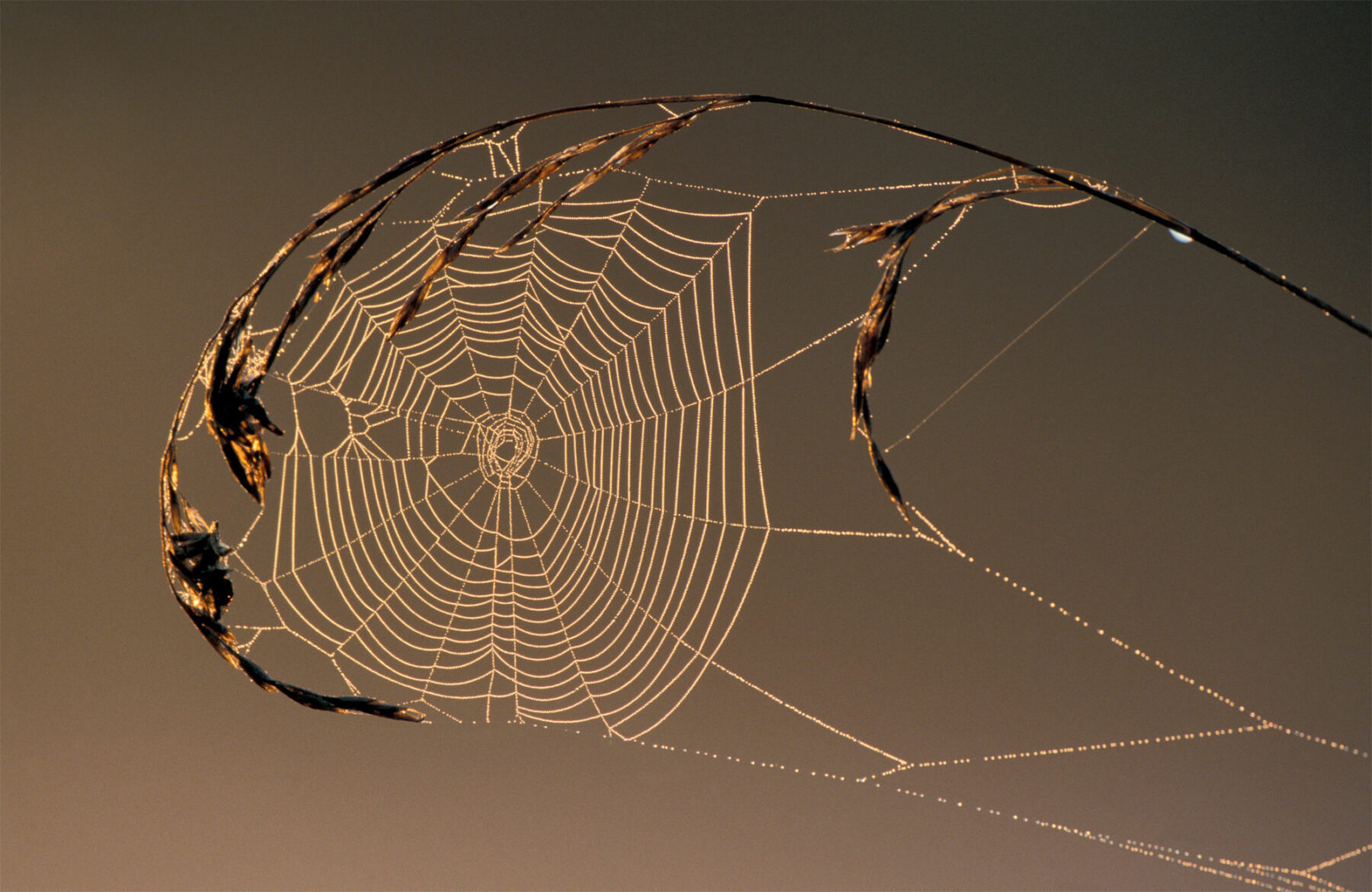 Les spirales des toiles géométriques sont bardées de gouttelettes collantes pour encore plus d’efficacité.