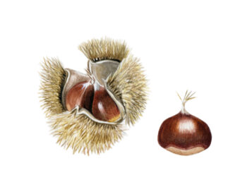Pas besoin d’être un·e expert·e pour le reconnaître : ses feuilles, luisantes dessus, se distinguent d’abord par leur longueur située entre 15 et 20 cm. Leur bord est marqué par des dentelures se terminant par un cil. Le fameux fruit, la châtaigne, est contenu dans une bogue hérissée de longues épines piquantes.