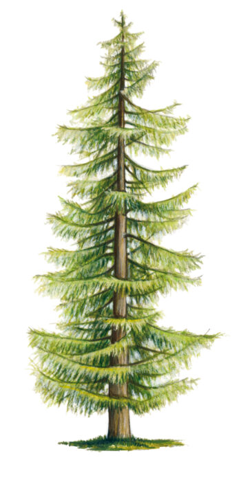 Pas exigeant, le mélèze ! Des sols pauvres tels que les pentes instables de montagne ou les couloirs d’avalanche suffisent à son bonheur. On le reconnaît à sa silhouette conique, dessinée par des branches dont les rameaux pendent sous elles. En automne, le mélèze d’Europe se pare d’une belle couleur jaune.