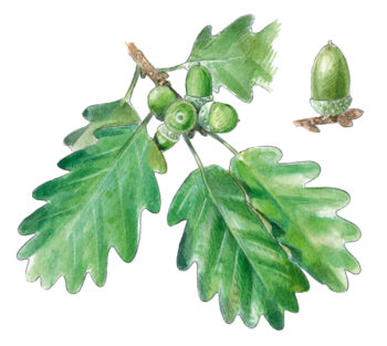 Quercus robur, le chêne pédonculé, fait partie de cette noble famille. Facilement reconnaissables, ses feuilles sont munies de chaque côté de trois à six lobes arrondis. Ce chêne peut atteindre 50 m de hauteur, l’équivalent d’un bâtiment de 15 étages.