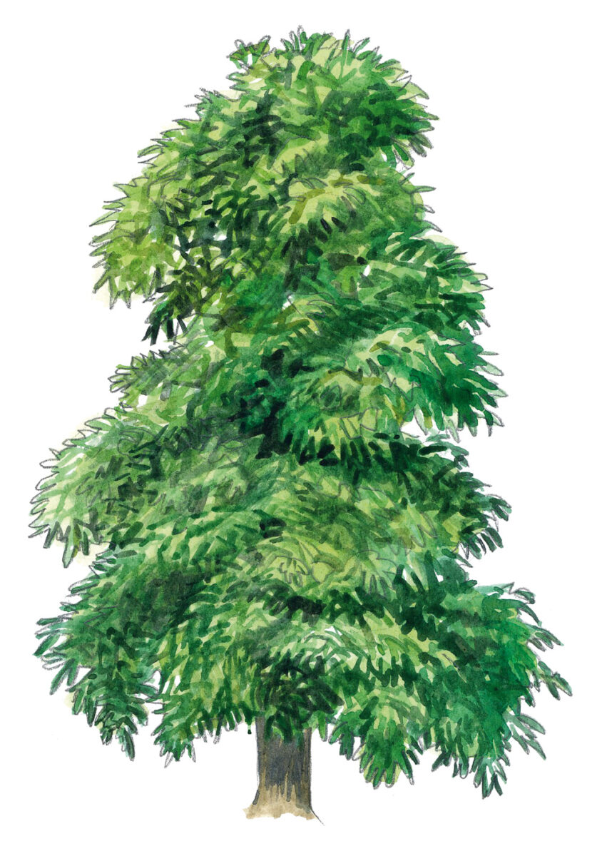 Pas exigeant, le mélèze ! Des sols pauvres tels que les pentes instables de montagne ou les couloirs d’avalanche suffisent à son bonheur. On le reconnaît à sa silhouette conique, dessinée par des branches dont les rameaux pendent sous elles. En automne, le mélèze d’Europe se pare d’une belle couleur jaune.