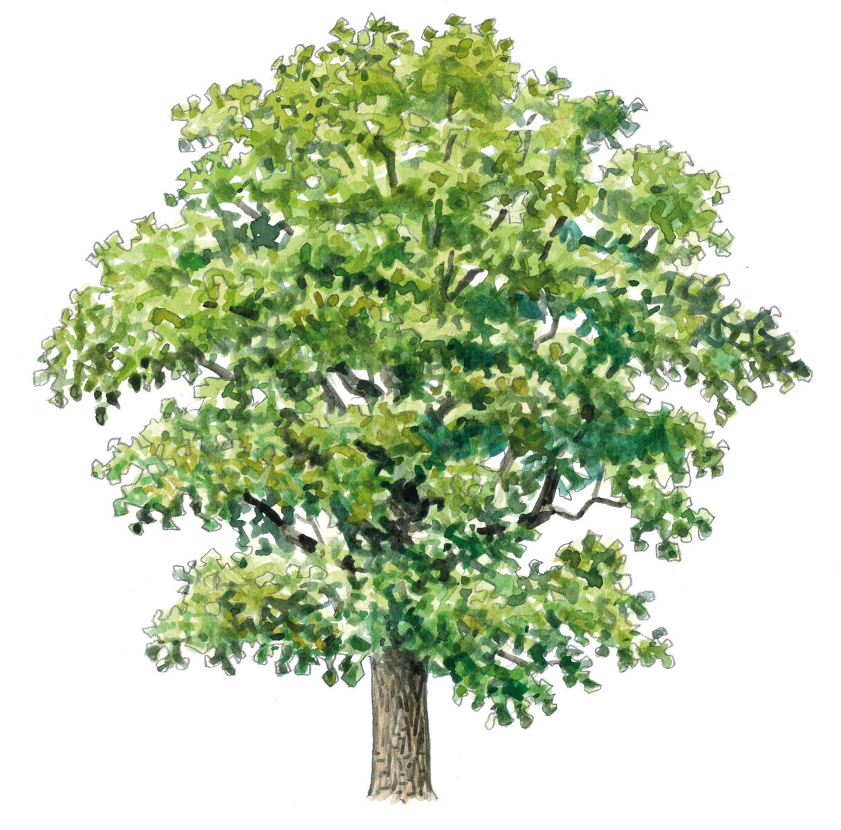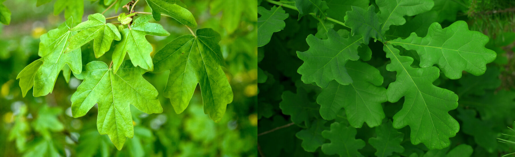 Quercus robur, le chêne pédonculé, fait partie de cette noble famille. Facilement reconnaissables, ses feuilles sont munies de chaque côté de trois à six lobes arrondis. Ce chêne peut atteindre 50 m de hauteur, l’équivalent d’un bâtiment de 15 étages.