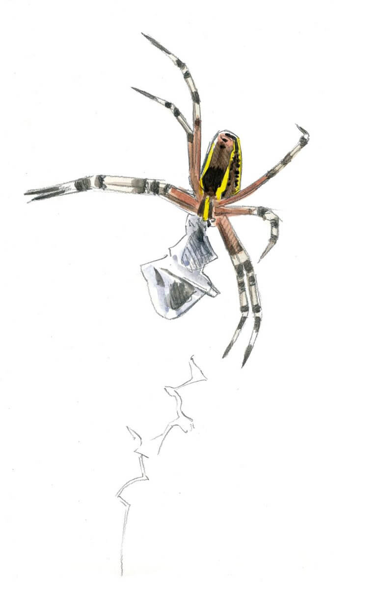 Stabilimentum : son nom latin suggère une fonction de stabilisateur. Faux ! Aujourd’hui encore, la vraie fonction du zigzag sur les toiles d’argiope fait débat. Plusieurs arachnologues le considèrent comme un signal visuel. Selon les uns, il attire les proies. Pour d’autres, il contribue au camouflage du filet de capture. La soie constituant le stabilimentum est du même type que celle utilisée pour enrober les proies. Il est aussi possible que le mystérieux motif résulte simplement d’un surplus de soie à l’heure de l’emballage. D’ailleurs, ces décorations sont d’autant plus développées que les proies sont petites.