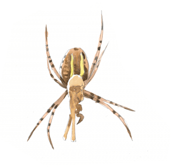 Les couleurs vives et contrastées des guêpes ou des frelons mettent en garde les oiseaux et autres prédateurs : attention, toxique ! Est-ce également le cas de l’argiope ? Peut-être… Mais une étude récente suggère que les bandes colorées sur son abdomen ont un effet inverse sur les insectes : la coloration fonctionnerait comme un piège visuel irrésistible. Papillons, abeilles et compagnie sont en effet attirés de manière innée par des couleurs vives et contrastées. Pour vérifier cette hypothèse, des scientifiques ont noirci l’abdomen de certains spécimens… Résultat, les individus maquillés attirent moins de proies. Lisez aussi nos 3 conseils pour observer l’épeire fasciée.