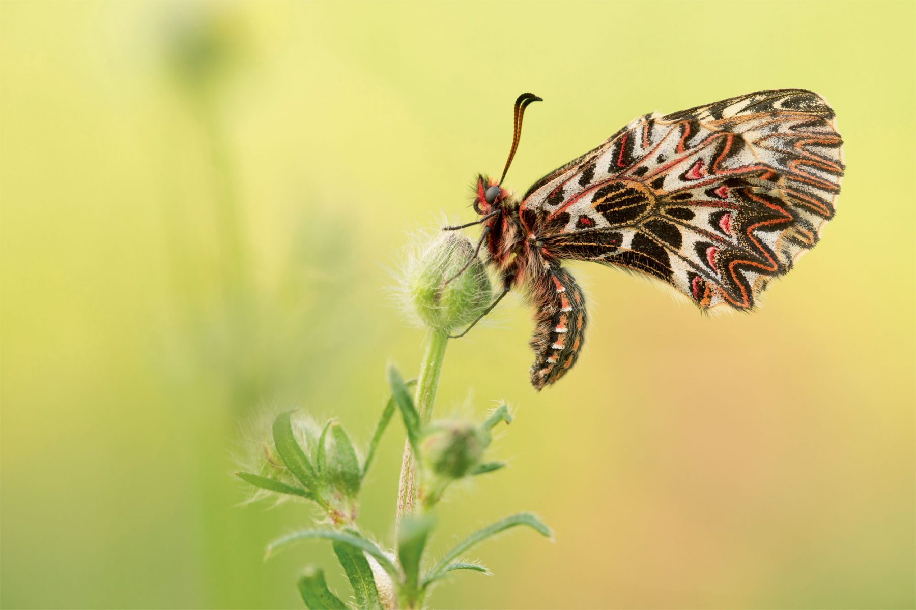 On dirait des libellules ayant emprunté leurs ailes à des papillons. En réalité, les ascalaphes ne sont ni des odonates ni des lépidoptères, mais appartiennent aux nevroptères. Cet ordre d’insectes aux ailes richement nervurées regroupe également les fourmilions et les chrysopes. Comme ses cousins du même genre, l’ascalaphe soufré est un prédateur qui capture mouches et moucherons en plein vol à la manière des libellules. Cette espèce est largement répandue dans le sud de l’Europe et remonte au nord jusqu’au Jura ou à l’Alsace. Elle affectionne les zones herbeuses ouvertes à semi-ouvertes, les forêts claires et les pentes ensoleillées jusqu’à plus de 2 000 m d’altitude.