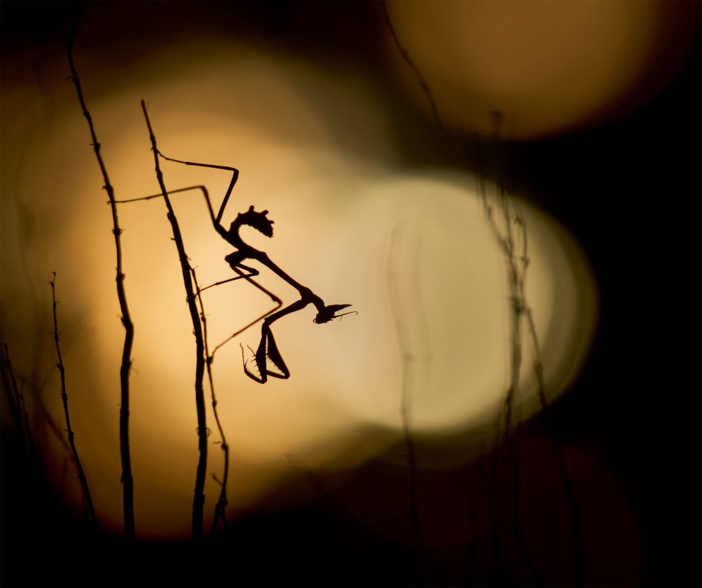 La réalisation d’une photo esthétique d’insecte en lumière naturelle n’est pas une mince affaire. Il arrive que toutes les conditions s’alignent de façon inespérée. Comme dans cette image que j’obtiens en approchant l’ascalaphe à plat ventre alors qu’un des derniers rayons de soleil filtre à travers la végétation. Cerise sur le gâteau, une graminée proche de l’objectif détache sa silhouette en ajoutant du relief à cette scène grandiose.