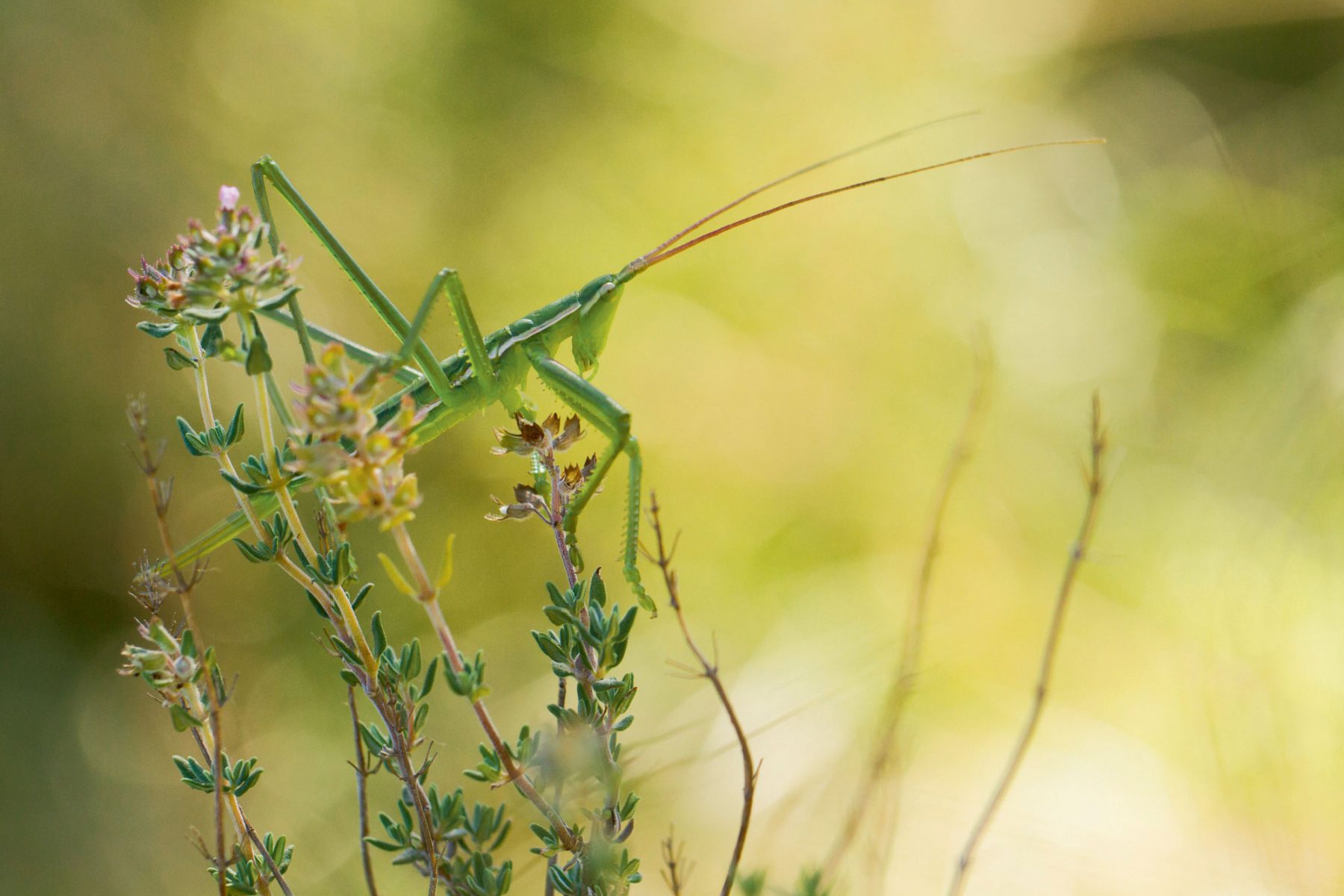 Ce monde austère tout proche de chez moi n’a de cesse de m’attirer et de me fasciner. Dans une chaleur souvent écrasante, je ne me lasse pas de guetter un frémissement dans les herbes qui révèlerait la présence d’une créature fantastique, au nom évocateur. Il suffit de penser à la magicienne dentelée – une grande sauterelle prédatrice – ou au diablotin – la jeune empuse pennée, championne du camouflage.