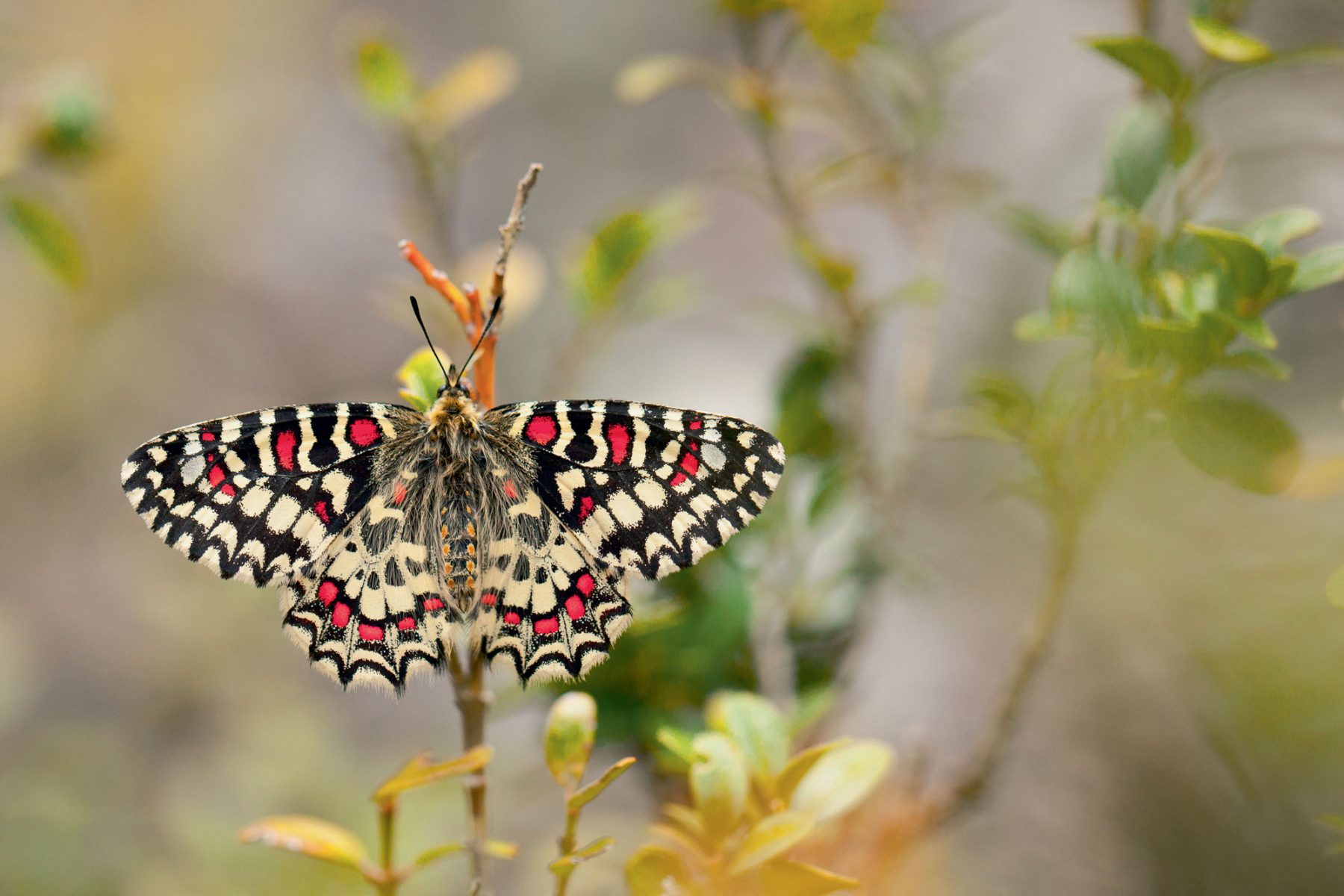 Ici, le printemps fête sa venue dès février avec les premières orchidées, alors que l’on voit encore la neige sur les sommets cévenols. Puis, au gré des pluies et de quelques belles journées, ce désert verdit et les ruisseaux temporaires chantent dans les petits vallons. Insectes et plantes se hâtent d’accomplir leur cycle, pressés par l’inévitable sécheresse. Car, à peine tombée, l’eau s’infiltre rapidement dans les fissures des roches calcaires. Face à toutes les merveilles qui s’offrent à moi en cette période, je ne sais parfois plus où porter mon attention, chaque jour offrant son lot de fleurs nouvelles et de senteurs. De remarquables papillons méridionaux se rencontrent dès le mois d’avril, à l’instar de la diane et de la proserpine. En mai, la garrigue atteint son paroxysme de couleurs et de vie.