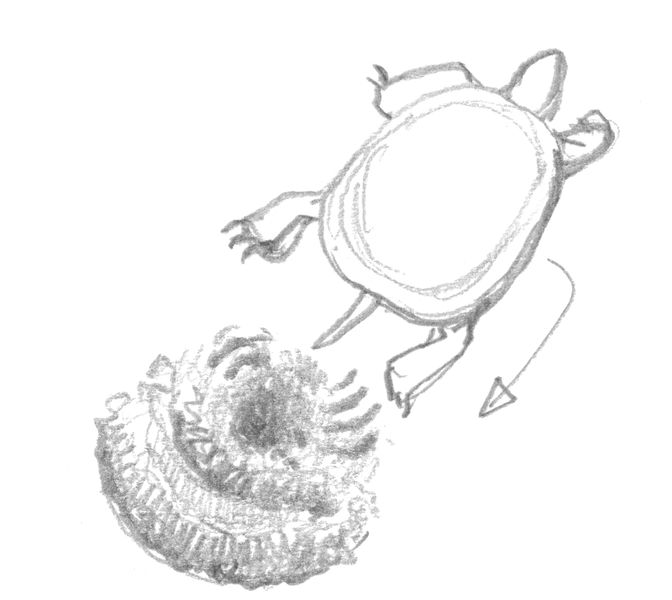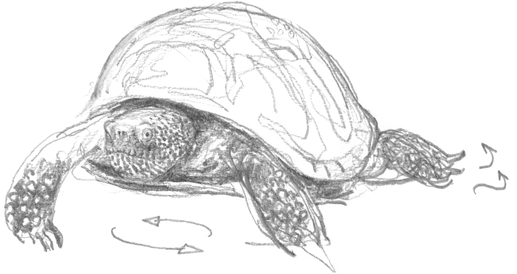 Le reptile creuse alternativement avec ses deux pattes en se déhanchant curieusement. Spectacle incroyable ! Cette créature aquatique a traversé des broussailles, des ajoncs, des fossés pour venir déposer son trésor au milieu des grillons sur ce petit coin de terre sèche. Lentement, on dirait que la bête s’enfonce dans le sol. Patrick explique en chuchotant.