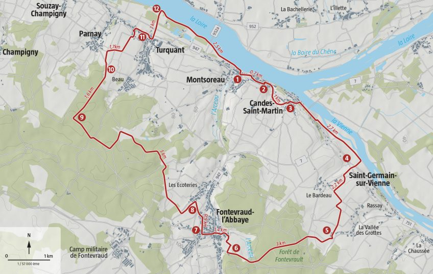 - (3) A Candes-Saint-Martin, longer l’église puis descendre vers la Vienne.