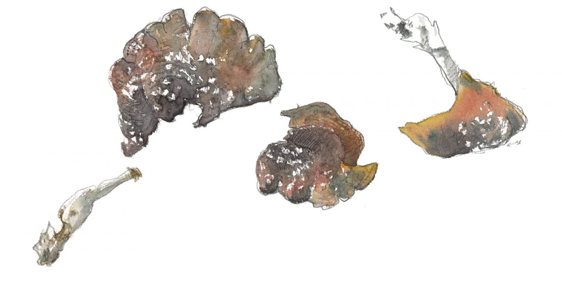 En forêt, nous quittons le sentier, explorant le sol couvert de champignons décrépits et d’herbes brunes. Retour à travers champs. « Tu as déjà vu des busards cet automne ?» demande notre dessinateur. Au même instant, un rapace brun passe au ras des labours. Couleur buse, mais ailes étroites et vol agile. Le busard Saint-Martin est de retour. Un bon présage pour décembre.