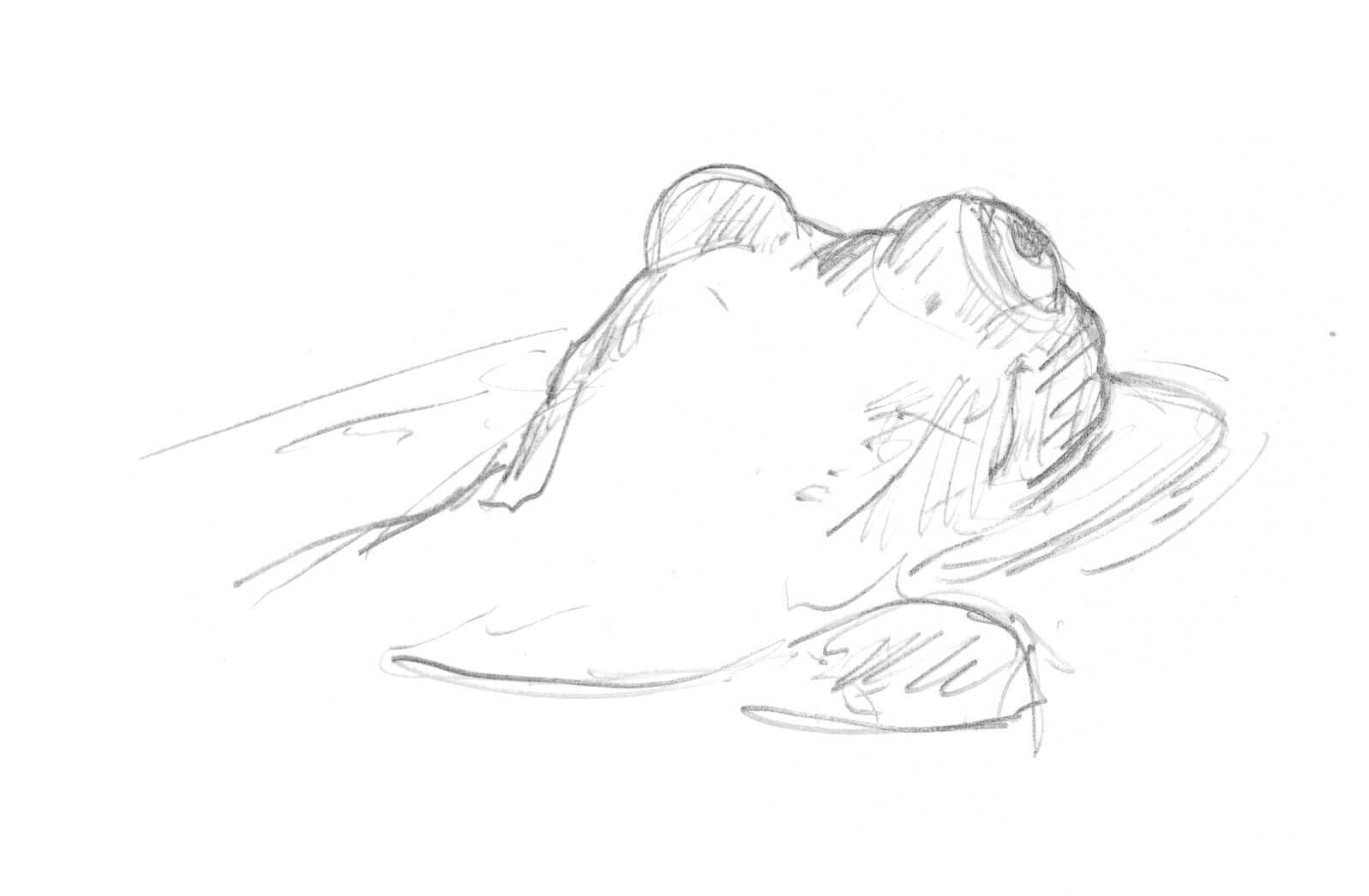 Pèlerinage habituel à la rivière, puis retour en repassant au bord de l’étang. Les grenouilles se font face joues gonflées et se chevauchent dans une étourdissante agitation. Peau lustrée, orbites globuleuses, elles flottent magnifiques entre deux eaux, tout absorbées par leurs vocalises, insensibles aux libellules qui volent au-dessus d’elles. Aux jumelles, nous jouons à nous perdre dans un dédale d’algues et de joncs, de laîches et de massettes. Savourons mille trésors : oh ! une petite épeire suspendue à son fil au coin d’une feuille... tiens ! quelques gerris qui pagayent par à-coups à la surface de l’eau. Là un couple de demoiselles qui survolent l’étang arrimées l’une à l’autre… Et soudain le gros, l’énorme joyau doré d’un œil de grenouille extatique.