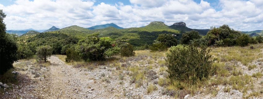 Les cris des grives musiciennes et des fauvettes mélanocéphales résonnent. Plus loin, le matorral s’ouvre sur d’anciennes pâtures emplies de romarin, brachypode et genêt scorpion. Les pelouses tournent au vert sombre sous l’assaut des ronces. Ici, le silence écrase tout, seul le vent fait bruisser les buissons et propage la senteur typique du thym. La via romana qui mène sur la crête embrasse l’horizon. La plaine de Pompignan, avec ses vignes et ses prairies, s’étale. Sur la droite, au-dessus de Saint-Hippolyte-du-Fort, se dresse le pic de Midi où s’est installé depuis 2004 un couple d’aigles de Bonelli, une espèce protégée et emblématique (> encadré ci-dessous).