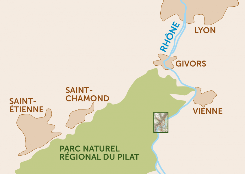 Aux portes de Lyon et de Saint-Etienne s'élève un autel dédié à la biodiversité : le massif du Pilat. Un patchwork naturel qui réunit crêts escarpés, landes, forêts de conifères et tourbières. Pour l'aborder, un circuit en forme de montagnes russes emmène des rives du Rhône aux terrasses du pays de Condrieu jusqu'au fond d’un ravin rhodanien. Partout, sur ce tracé sans vertige, les premières fleurs se risquent à montrer le bout de leurs pétales.
