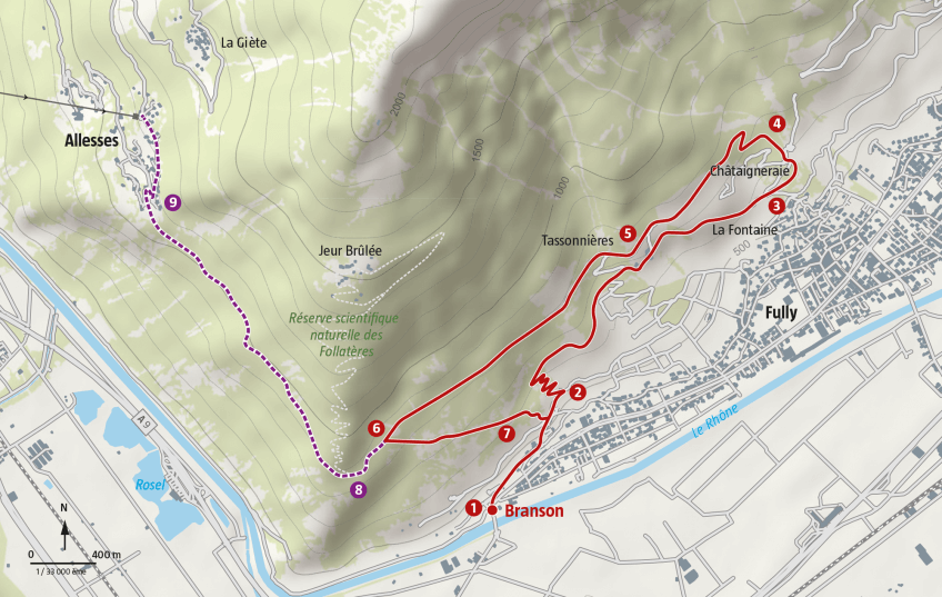 - (9) Suivre Alesse télécabine si vous envisagez de descendre sur Dorénaz.