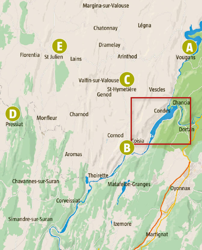 La Petite Montagne est comme une première marche vers les sommets enneigés du Haut-Jura, avec la rivière Ain comme frontière. On imagine ses gorges profondes lorsqu’elle serpentait libre, avant que n'apparaissent de vastes retenues ténébreuses érigées au service de la fée électricité.